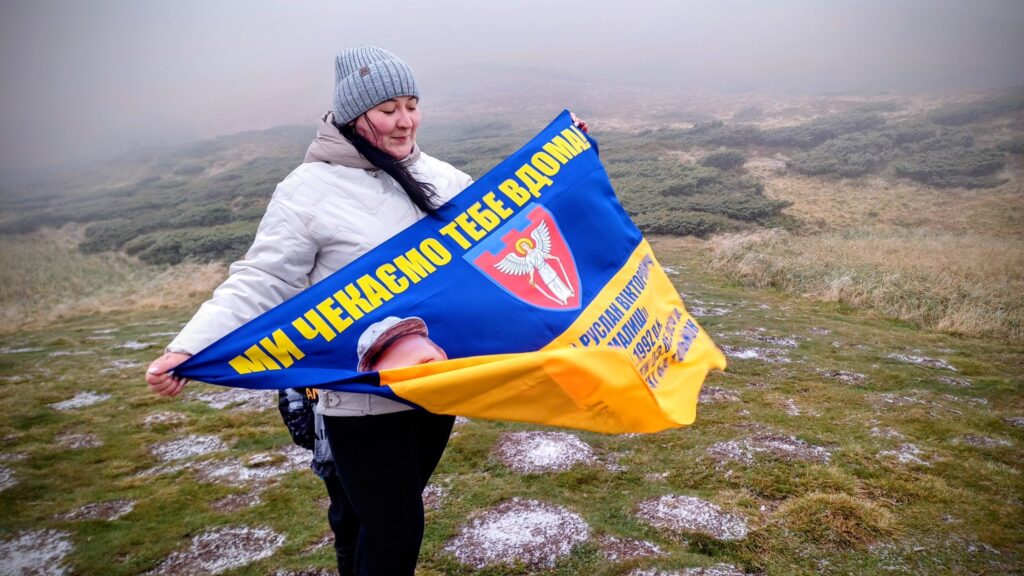 Sme prvý deň v našom terapeutickom tábore pre ženy a deti nezvestných ukrajinských vojakov zo 114 brigády v ukrajinských Karpatoch. Vyšli sme k malému jazeru. Svitlana drží v ruke zástavu. Nechce ju rozbaliť: „Táto je osobná.“ Nakoniec nám ju ukáže. Je na nej jej muž. Tri mesiace nezvestný. „Veríme, že sa vrátiš,“ odkazuje mu. „Čakáme ťa. Ľúbime ťa.“